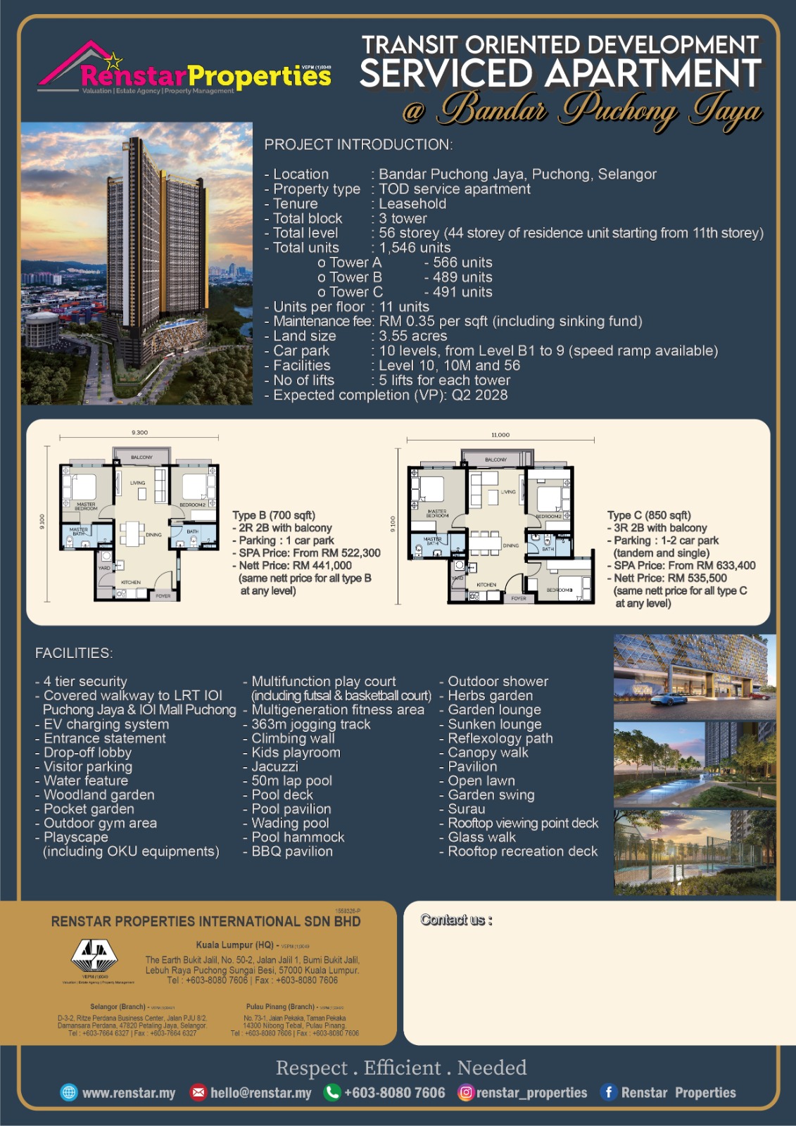 - Maintenance fee: RM 0.35 per sqft (including sinking fund)